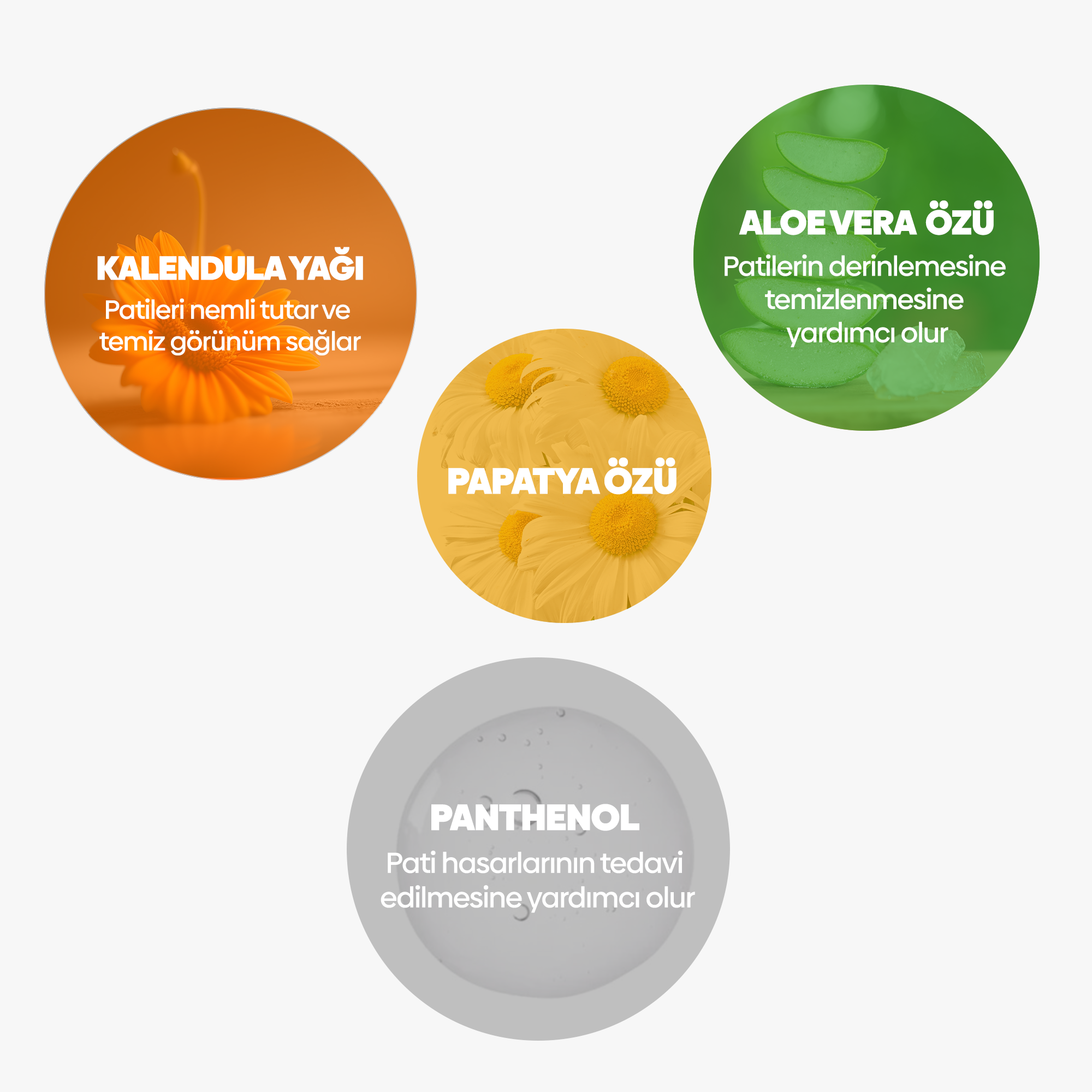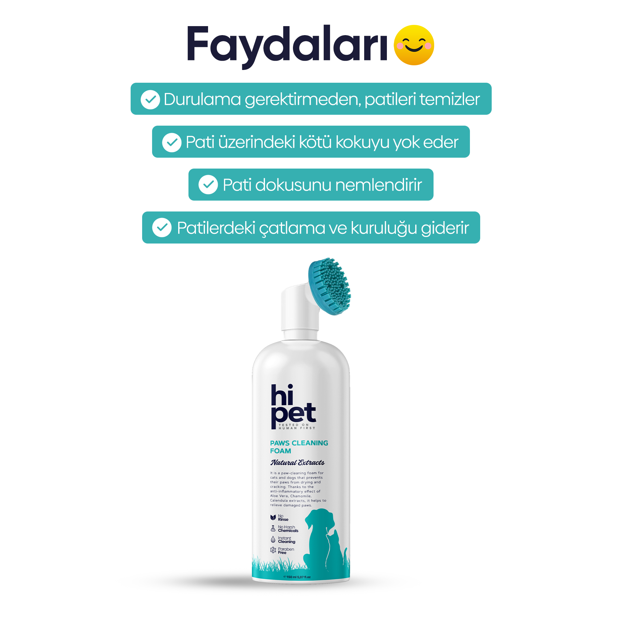 Minik dostlarımızın patilerinde dış etkenlerin yol açtığı çatlaklar ve kuruluklar oluşabilir. Hipet Pati Temizleme Köpüğü, patileri nemlendirerek çatlakların önüne geçer.